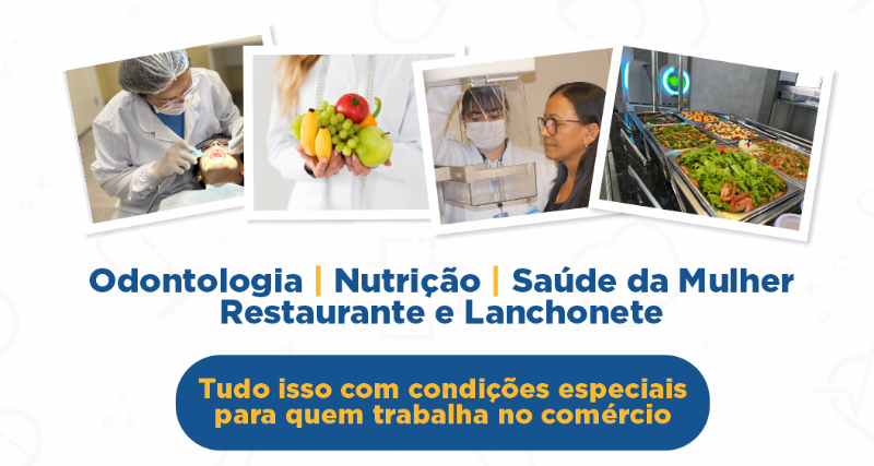 Nossas unidades também contam com restaurantes e lanchonetes com cardápios balanceados acompanhados pela nossa equipe de Nutrição. Aqui você encontra alimentação saudável tanto na hora do almoço quanto naquele lanchinho ao longo do dia, por preços acessíveis a comunidade e com descontos especiais para trabalhadores do comércio e seus dependentes.