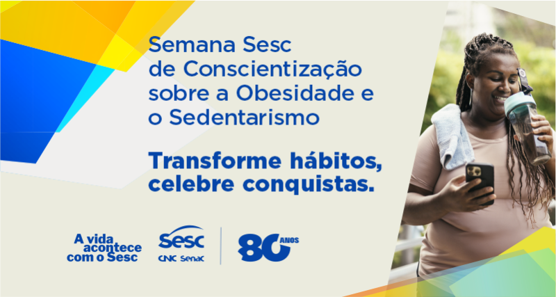 A Semana Sesc de Conscientização sobre a Obesidade e o Sedentarismo é um movimento nacional que une profissionais do Sesc e pessoas que decidiram cuidar da saúde e transformar suas vidas, por meio de uma programação gratuita repleta de atividades físicas e ações de conscientização ofertadas à comunidade.