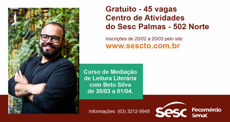 Informações: (63) 3212-9948 ou envie um e-mail para literatura@sescto.com.br