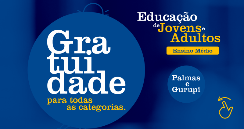 e Adultos, EJA. As turmas abertas são para as cidades de Palmas e Gurupi, e as